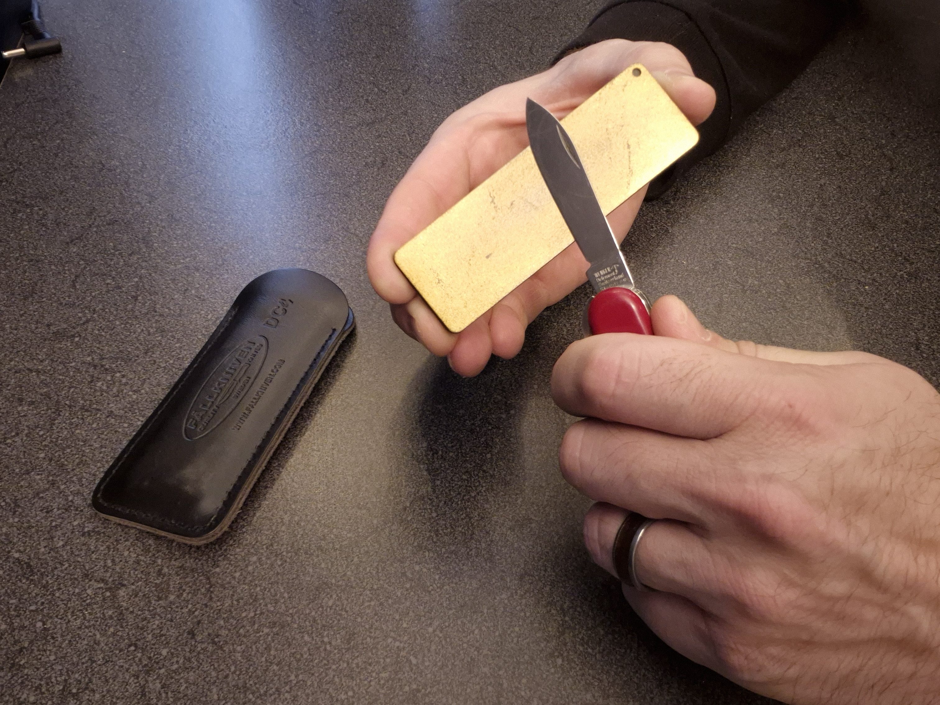 Between those two sides, I can get a blade with a good working edge, and with the leather sheath, I can refine it a bit with some stropping. I loaded my sheath up with some compound to make it a more effective strop. The only real downside is also what makes it so easy to carry, its small size. The sharpener is very thin, and I hold it with the tips of my fingers from underneath while working the knife over it. All is well if you mind your fingers and take your time, but there is an increased chance of cutting the tips of your fingers if you get a little careless. But overall, the DC4 is a good insurance policy that won’t weigh you down in the field, and that’s why I have been carrying mine for years.