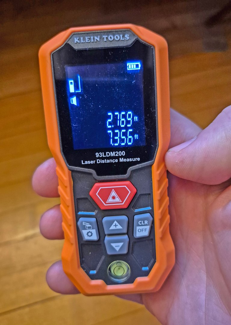 The laser unit works well, and it spits out accurate areas and volumes and distances, but the bulk and shape make holding it in place for laser measurements less than ideal. And, there is a big warning to retract the tape slowly so you don’t damage the laser and sensor. This is a good tool, and I really like the idea of combining these two concepts. Even with the awkward ergos, I was still able to get the measurements I needed.