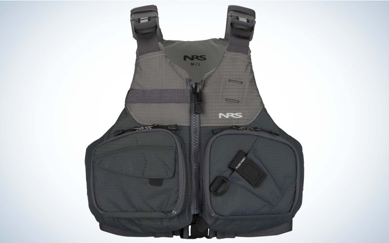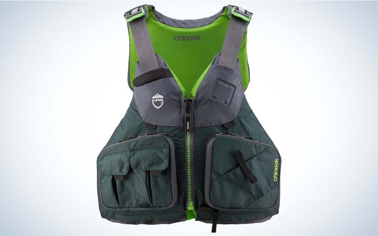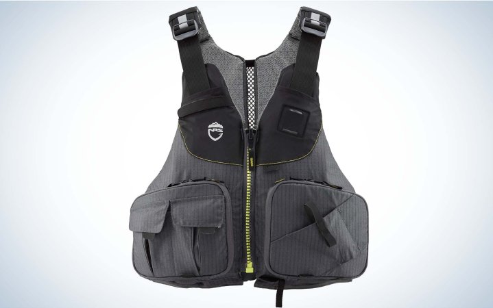 The NRS Chinook is a staple for kayak anglers. It has a lot of gear storage and has six adjustment points for a custom fit. All the storage options on the Chinook are catered to what kayak anglers need, including a rod holder loop, knife holster, and external gear tab for holding pliers or other fishing accessories. While all the pockets and gear storage are a plus, I found they add bulk and can make this vest a little warm on hot summer days. It does have a mesh back, which helps vent some heat, though.