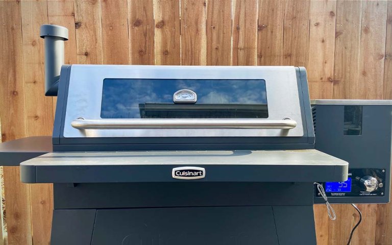 The Cuisinart Oakmont pellet smoker comes in at a lower price than several of the comparable sized smokers I tested, but it comes with many of the same features found on the more expensive smokers. Top features include a large cooking area, a viewing window that allows you to check on food without opening the lid, and double 10-watt lights for convenient nighttime cooking. I was surprised at how handy the interior lights were on nights when it got dark before dinner was ready. And I’m honestly not sure why more manufacturers don’t include them. The Oakmont also had one of the easiest temperature and control systems on any of the smokers. It wasn’t the easiest to assemble, but if you’re looking for a pellet smoker that is comparable to others at higher price points, the Oakmont is an excellent option.