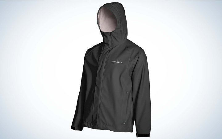 The coat is a PVC-based fabric that is stretchy but tough. It’s one of the most durable jackets I’ve used for the weight. If you don’t expect much rain, a lighter breathable option might be better, but for perpetually wet areas or extended trips in the mountains or on the boat, this jacket is tough to beat.—Tyler Freel