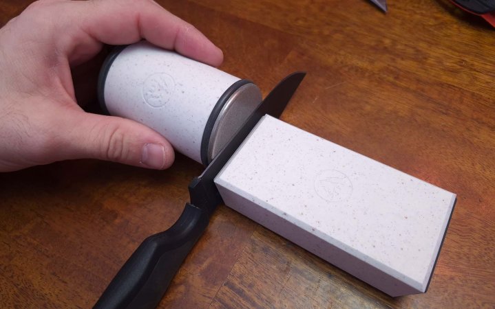 Rolling Knife Sharpeners have been aimed at kitchen cutlery from their inception, and that is still where they do their best work. Larger, broader blades tend to work best with this style sharpener, but some newer block designs like that on the Worksharp and HONE open rolling sharpeners up to nearly any style blade you want to sharpen. Overall, rolling sharpeners are easy to use and comparatively inexpensive with other fixed angle sharpening systems. Paired with a strop, rolling sharpeners can produce some very clean, sharp edges, and the higher-end ones will stand up to premium steels used in pro-level kitchen cutlery and outdoor and hunting blades. They are compact and portable and only need a flat surface to work. With some patience and practice, most of these sharpeners can get the advertised level of sharpness, and should take care of your kitchen cutlery with relative ease.