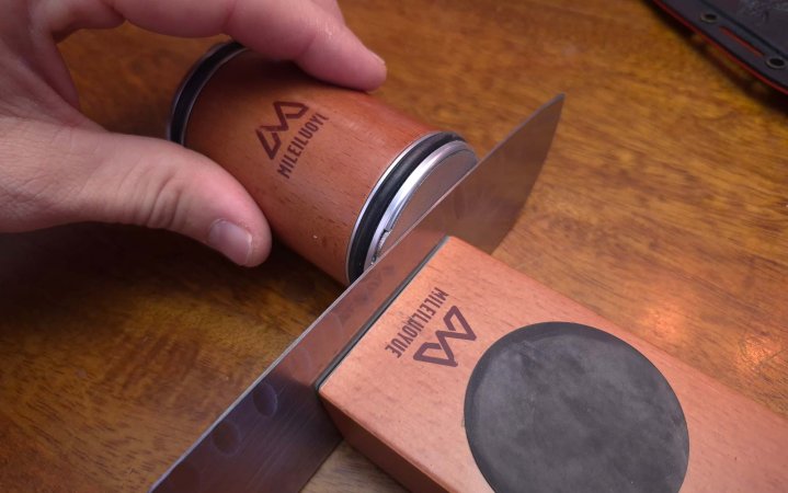 The Mileiluoyue rolling Knife sharpener did a very respectable sharpening job, regardless of the price. Was it as good as most others? No. Do the diamond discs last as long? Again, No. But, for $25, you can raise a burr with the 400 grit, and get it pretty well refined with the 1000 grit. If you are looking to use this sharpener to sharpen some inexpensive kitchen knives that are just labeled “stainless,” then this sharpener will work for you. The edges will be plenty sharp for home use, and the discs will take care of softer steel with not much problem. However, if you have some higher end cutlery, outdoor or kitchen, then the diamond coatings will not hold up for you very long at all. I tried this on some Cru-Wear on a high-end hunting knife, and it all but wiped out the 400 grit diamond disc. Obviously, to keep costs down, the bonding process and materials for the diamonds will be different and lower quality. I have diamond stones that have held up for over 500 blades, and these stones were pretty beaten up after one blade made from a super steel. However, they held up well enough with less expensive blades and softer steels that occupy the majority of the kitchens, and so this is a viable option if you don’t have pro level blades. The good news is that they supply you with 3 sets of discs which will help prolong the lifespan. At the end of the day, the Mileiluoyue Rolling sharpener produces a pretty good edge at a rock-bottom price.