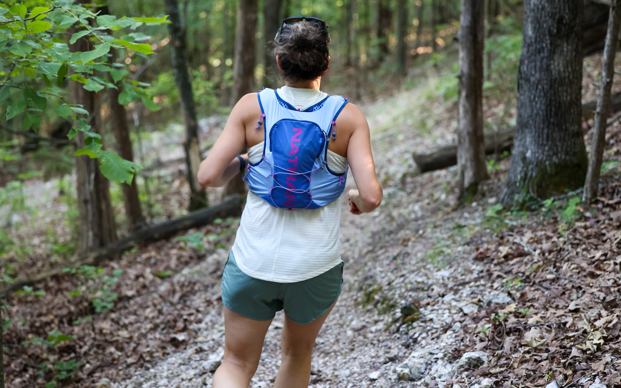 OL executive editor Natalie Krebs loaded up the Nathan Vapor Airess for training runs in preparation for the New York City Marathon and to tire out her 3-year-old bird dog Hatchet on rocky and rooted single-track mountain bike trails. Under hot and humid conditions in Northern Arkansas, she put Nathan’s breathability claims to the test. The cropped fit akin to a “cargo sports bra,” limits how much heat can get trapped, and it didn’t stifle Krebs’ stride during a 100-degree heat wave.