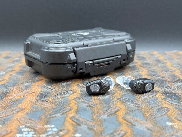 Axil’s XCOR Pro are in-ear buds that provide great sounds suppression with all the functionality of non-protective ear buds such as Air Pods. They come in a recharging carry case and include a variety of foam and rubber ear tips. For shooting, I prefer the seal of the foam tips, and when inserted correctly, the body of the earbuds sits in the concha, or bowl, of the ear. For shooting muzzle brakes, it’s nice to double up and some over-ear muffs don’t fit comfortably over the XCOR Pros, but many do.