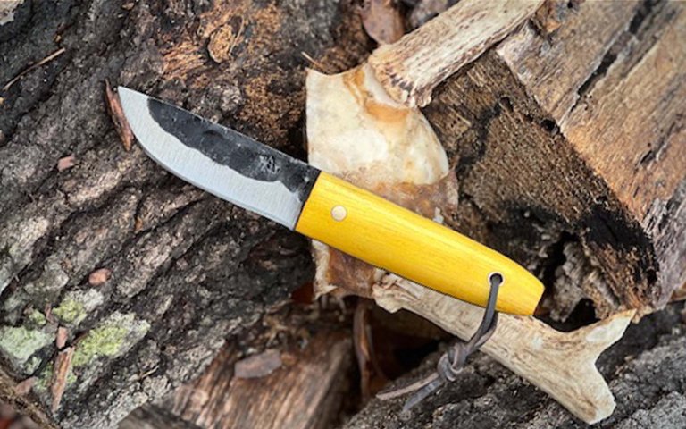 The square spine on the Eldris is ready to go out of the package, and it throws great sparks and will easily process tinder. It’s simple to maintain and easy to sharpen. The blade will cut meat well as it’s a bit thinner but is limited by its length. It makes an outstanding second knife to compliment a larger cutting tool. It’s available as just the knife with a sheath or as a fire-starting kit. I’ve been using one for years, and starting at around the $30 price point is a bargain.