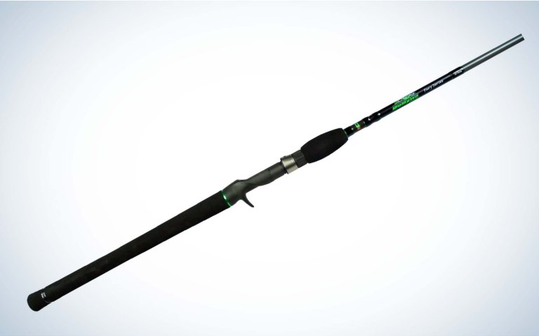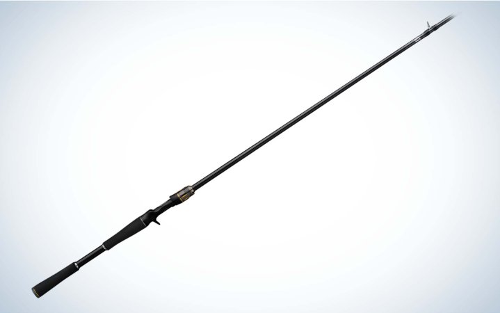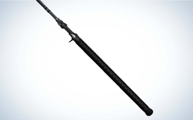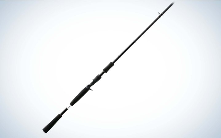 This is one of the most impressive budget rods I’ve fished. It’s perfect for throwing a 4-ounce bait, and it’s one of the few rods where I’ve found the manufacturer’s lure weight rating is accurate. It’s definitely a hard bait rod with a deep parabolic bend. Despite its soft action, it has a powerful butt section which I really like for fishing around grass.
