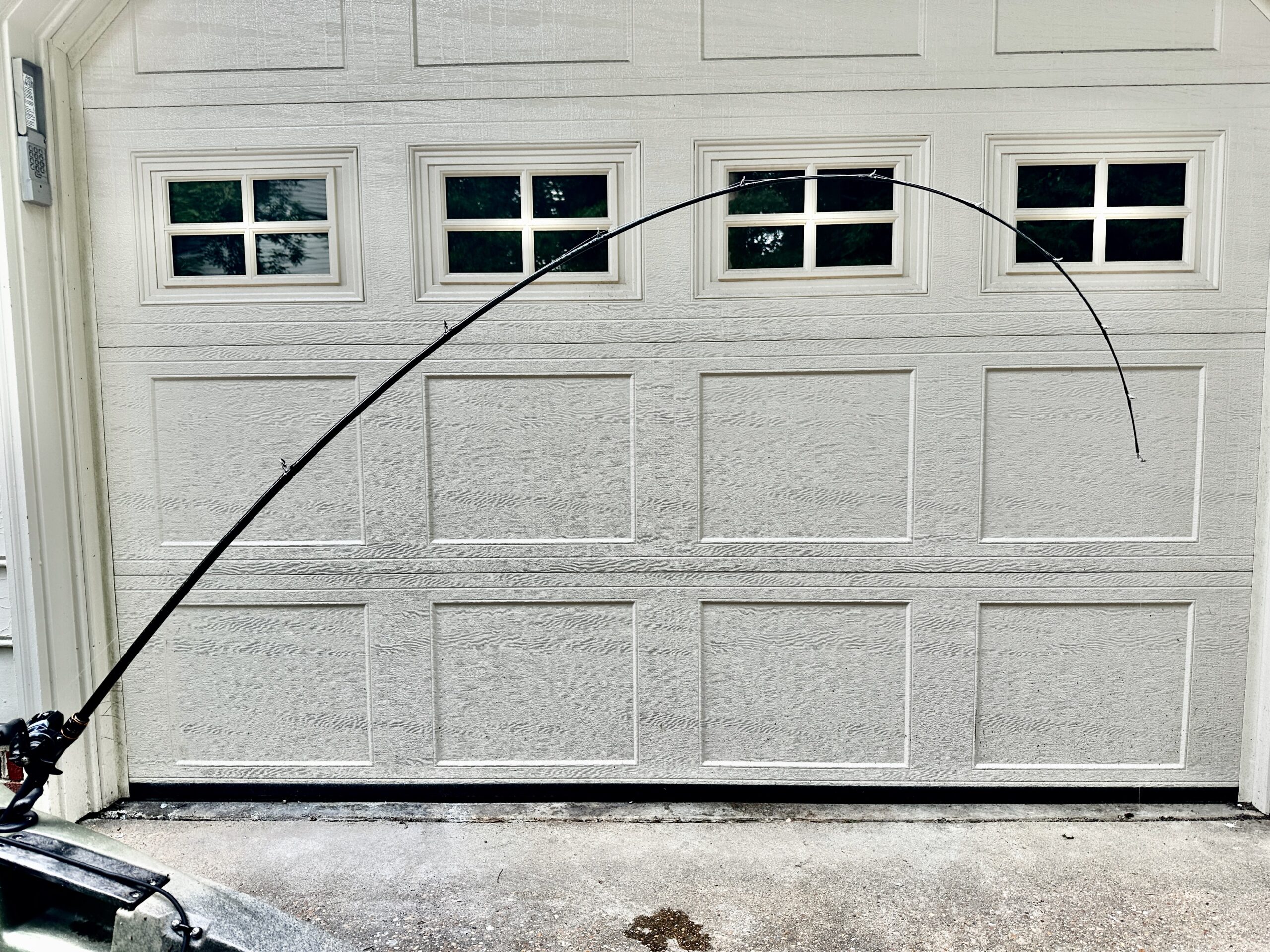 The split grip has a spiral EVA foam grip that’s comfortable and looks cool. The grip lengths vary depending on the rod. My 7-foot 11-inch heavy rod has the goldilocks handle length for me — 21 inches. I can tuck it under my armpit while cranking but it’s also not in the way when I need to maneuver.