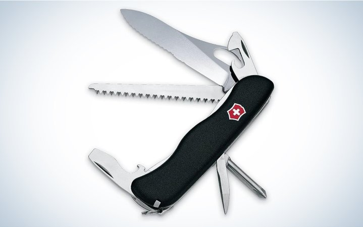 A locking blade can do tougher tasks without fear of it becoming a finger guillotine. Victorinox makes 79 models with locking knives, but the Trekker has the benefit of a one-handed opening blade, and it comes in under 5 ounces. Other locking options push the 6 ounce mark and take up a lot more pocket real estate. If you don’t need a Phillips screwdriver and prefer a plain-edge blade, the Forester M Grip is another great choice.