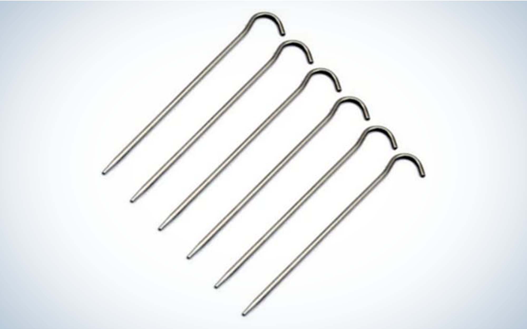 But do you want a shepherd’s hook style stake? There are some pros and cons. The first pro is that the simplicity of the design means that the titanium versions can get down to an impressively low weight—as low as the weight of my best ultralight pick. They are also easier to snag a tent loop onto than the Y-shape or nail peg designs. Finally, they just look nice: This is the platonic ideal of a tent stake. Now here are the cons: Like all cylindrical stakes, its holding power in soft dirt is only OK. Worse, in my opinion, is that when pounding the shepherd’s hook stakes into firm ground, it can be hard to get purchase with the rock—these stakes have a tendency to just vibrate a whole bunch without actually going into the ground. They will eventually go in, but it can be significantly more time consuming than with a different style stake.