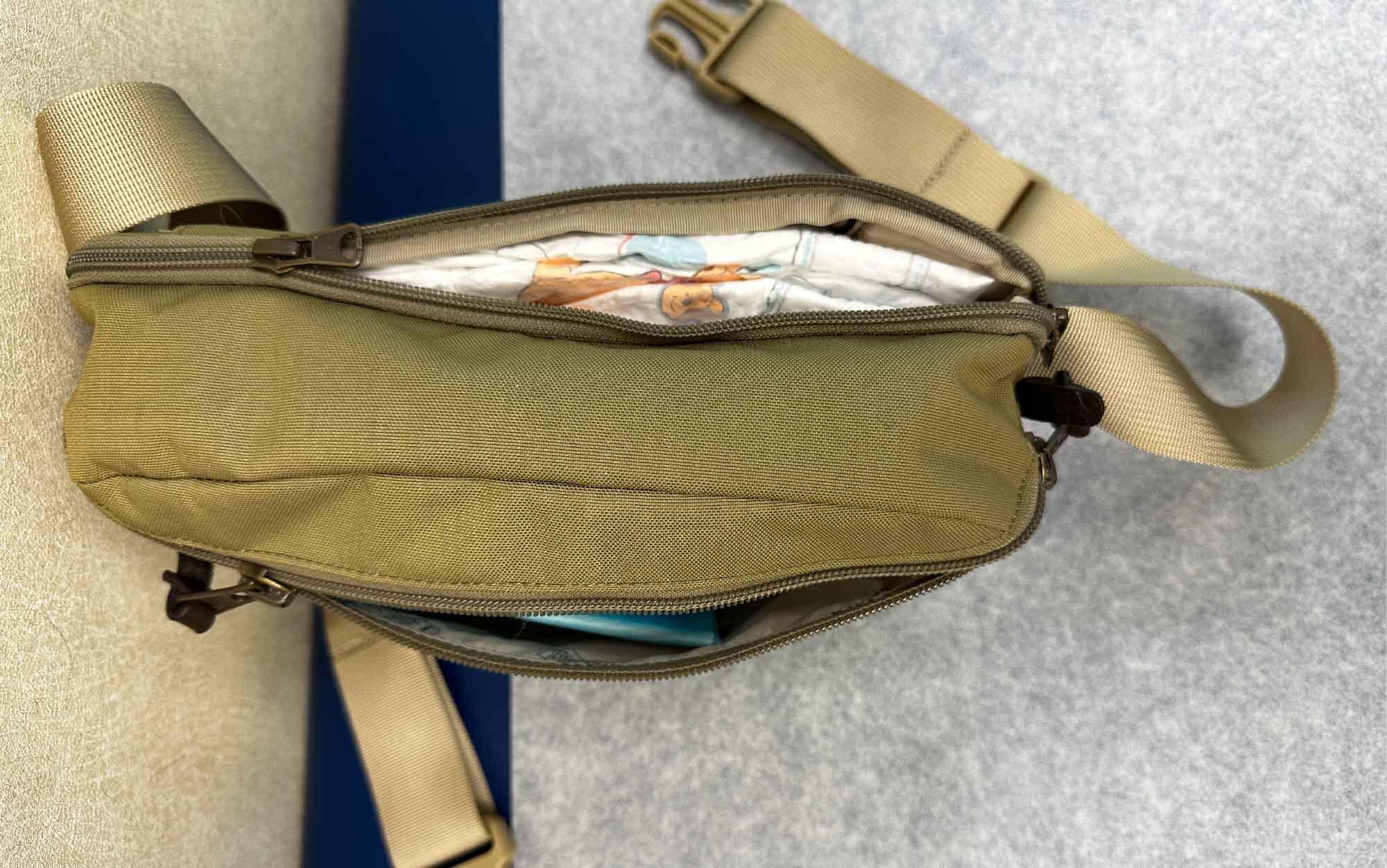 - Holds everything needed for traveling with a baby or toddler