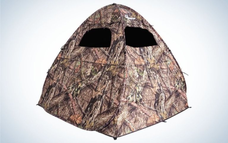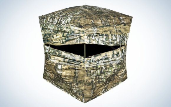 This quick-deploy two-hub open-style blind with a trio of shoot-through windows is great when you need to pull up and make an adjustment on the fly. I’ve used the SurroundView Stakeout Hunting Blind for shotgun and bowhunting wild turkeys, and it’s phenomenal. Toss it in a backpack or carry it in your offhand and roam the woods in search of that old boss gobbler while you’re running a turkey mouth call. The two-hub system is a durable, quiet, and fool-proof design. The windows are sized just right for shooting without giving you away. Plus, you can back this almost 60-inch blind against any cover. When you consider the versatility and price of this blind, it’s almost worth buying as a just-in-case option.