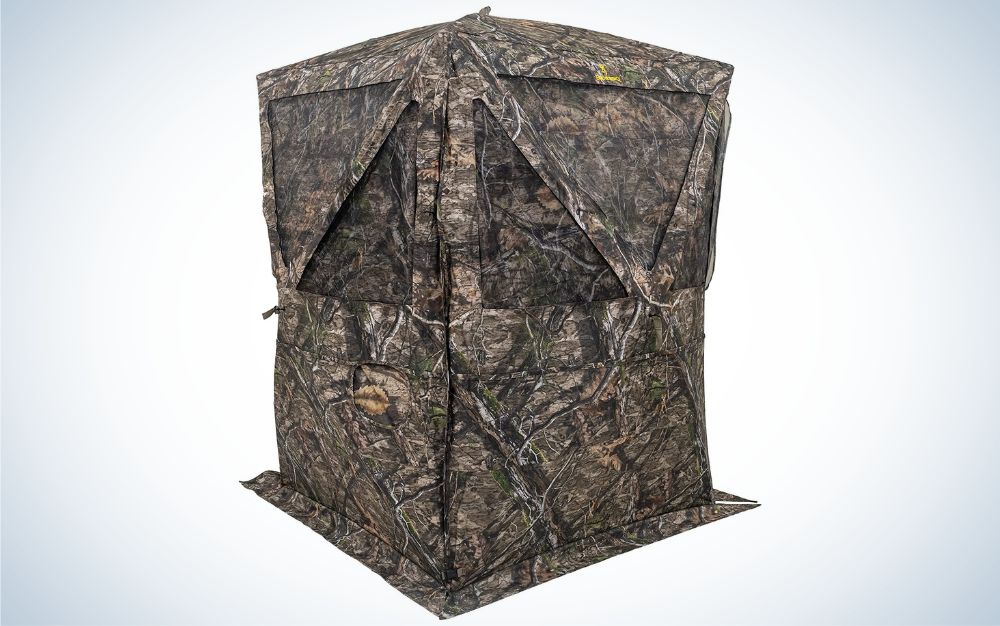 I’m not a fan of pop-up-style ground blinds, but Ameristep’s Gunner is an exception. This blind is roomy for one hunter, super durable, and a perfect when you don’t need the extra room of most blinds. Ameristep has been building quality hunting blinds for decades, and if anyone has perfected the pop-up, they have. This one-person ground blind is lightweight and roomy, and the design makes it super simple to blend into any environment. The outer shell is made of tough Durashell Plus fabric, and the matte finish reduces any glare. Its size makes it one of the best turkey blinds for solo hunts or if you’re hunting a distant spot with minimal cover.