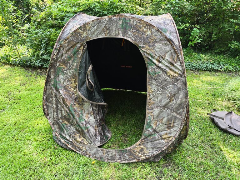 The only downside of this blind is that it takes some work to construct and set. I set mine myself on a farm I lease, but it’s easier if you have a buddy with you. Because of its size and weight, this style of blind is best suited for private land hunting (you can’t exactly pack it into a public land spot).