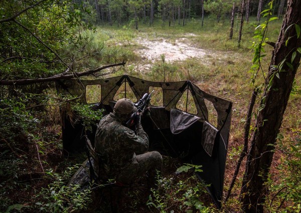 For a budget-priced blind, this one also comes packed with features I generally only expect to find in more expensive models, like a matte, blacked-out interior, and ninja-quiet secure window sliders. The windows also drop lower in the corners, providing plenty of visibility for up-close gobblers or short hunters like me. Those tall window openings are also an advantage when chasing turkeys with a bow. -Alice Jones Webb