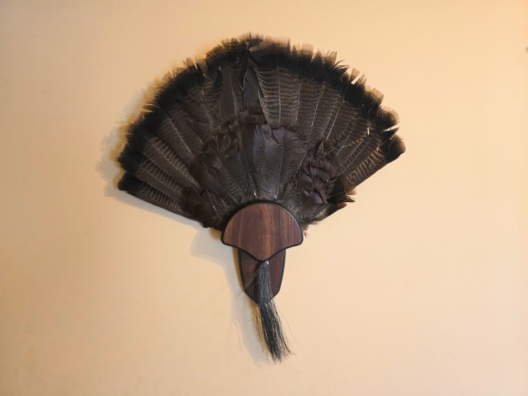 Properly preparing and preserving your turkey fan is the most important factor for a nice mount. I’ve botched my share of gorgeous fans by being careless, trying to cut corners, or not pinning the feathers securely. Fortunately, you can learn from my mistakes. Follow these tips to help you get a professional-looking fan mount.