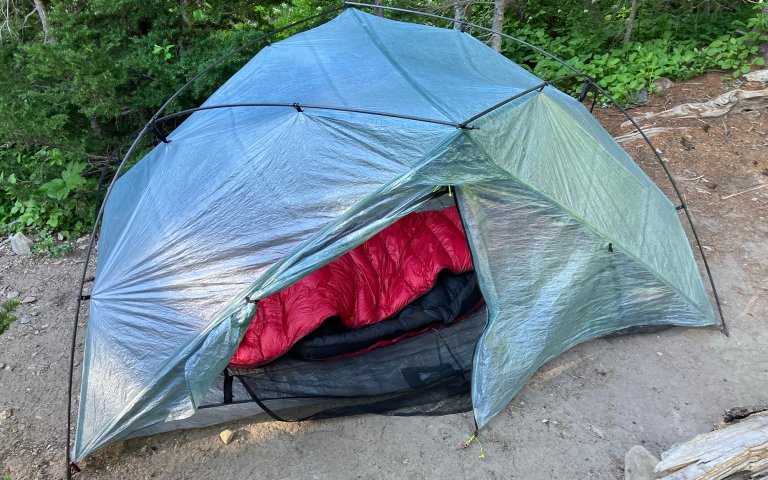 We also had concerns about its storm-readiness. Unlike other ultralight tents, there is no zipper on the door, just clips at the corners of the two sides that secure to a stake. That means rain and wind can both push their way through if you haven’t protected yourself by some other means. Experienced thru-hikers will know if this is a risk they are willing to take. After all, some trails are unlikely to see conditions that would make this an issue, and there is always the option to prop your backpack up in the door to provide some extra protection. But we think early-career ultralight backpackers should think twice before committing to a setup like this.
