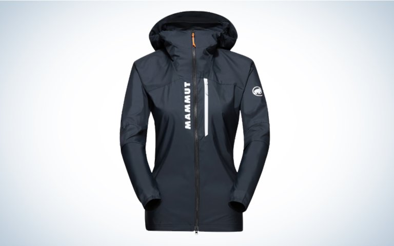 Our tester fell in love with this lightweight windbreaker, noting its roomie torso, pockets, and surprising breathability for a shell. The Mammut Aenergy WB hooded jacket is made from recycled polyamide and weighs just 123 grams, making it incredibly light. One tester wore it over and over in wind and snow and stayed warm and dry.