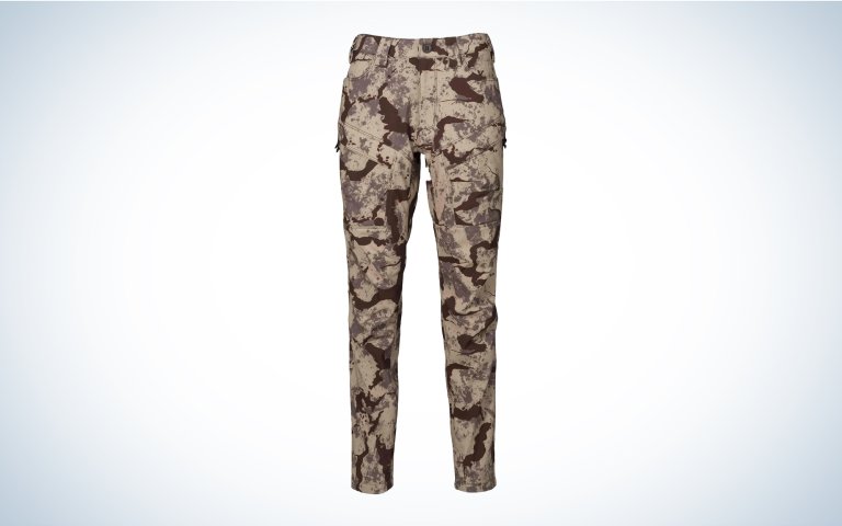 These are the hunting pants for every woman who has ever complained about how women’s hunting pants don’t fit them properly. As soon as you get your hands on them, you know they’re different. Trade in the plasticky fabrics of most technical hunting pants for something more synonymous with heavy-duty yoga pants … and then add reinforced paneling on the seat, hips, and cuffs, six zippered pockets, a buttoned waistband with belt loops and no-slip silicone, reinforced and articulated knees, and a few versatile camo patterns.