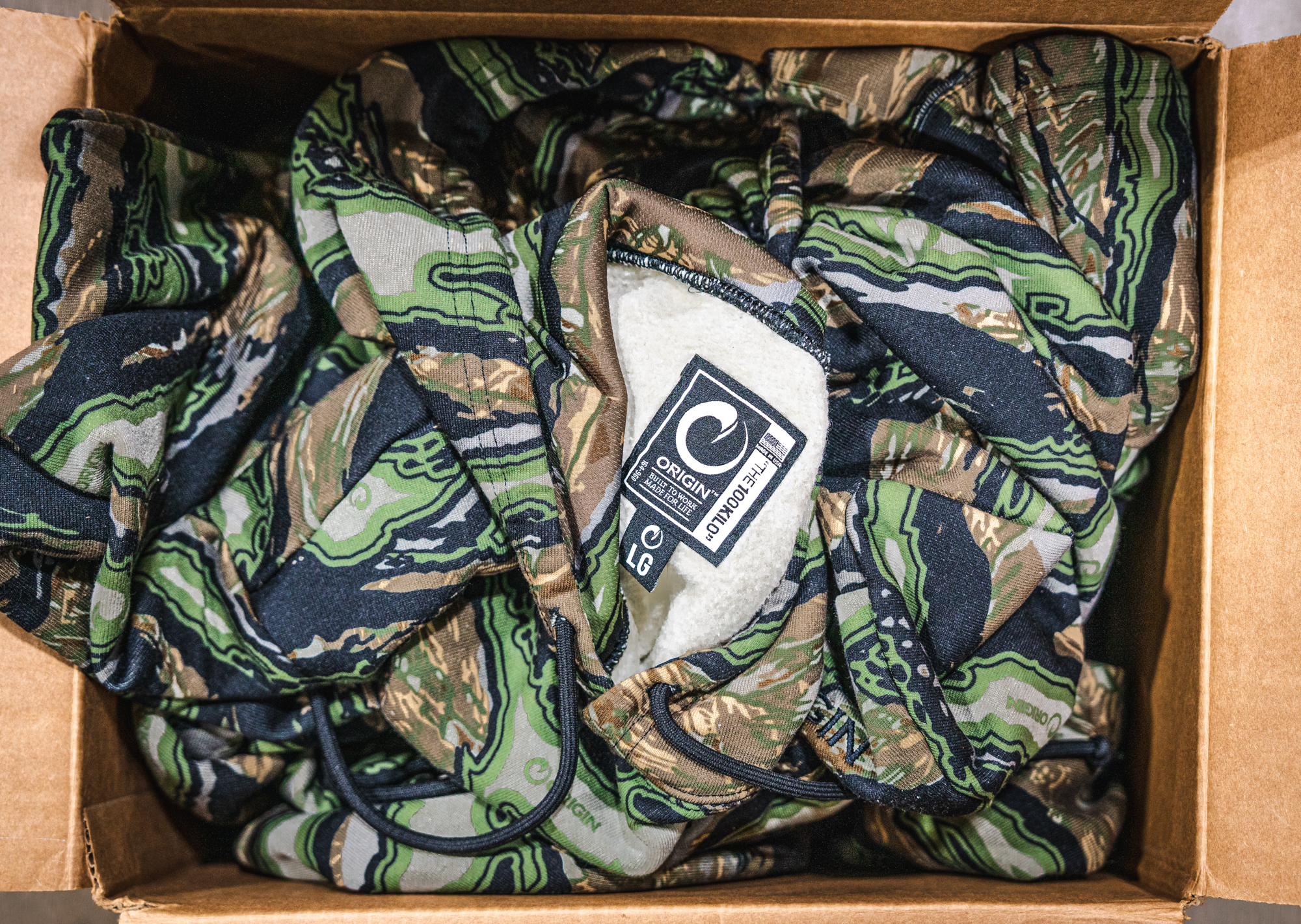 Camouflage made in the U.S. might not sound novel, but it’s a rare product. If hunters are anything, as Fulks points out, they’re a patriotic bunch, emblazoning the stars and stripes on truck sides, bumper stickers and gun stocks. But look at the tags in your new pants, wicking shirts, and down jackets, and you’ll find very few modern-made garments that weren’t made overseas. While Origin isn’t the only company making camo in the U.S.—Forloh and Voormi also manufacture stateside—the company is coming to the public with a splash that includes big names, a high-profile social media presence, and the bootstraps, made-in-America origin story that consumers can’t seem to get enough of.