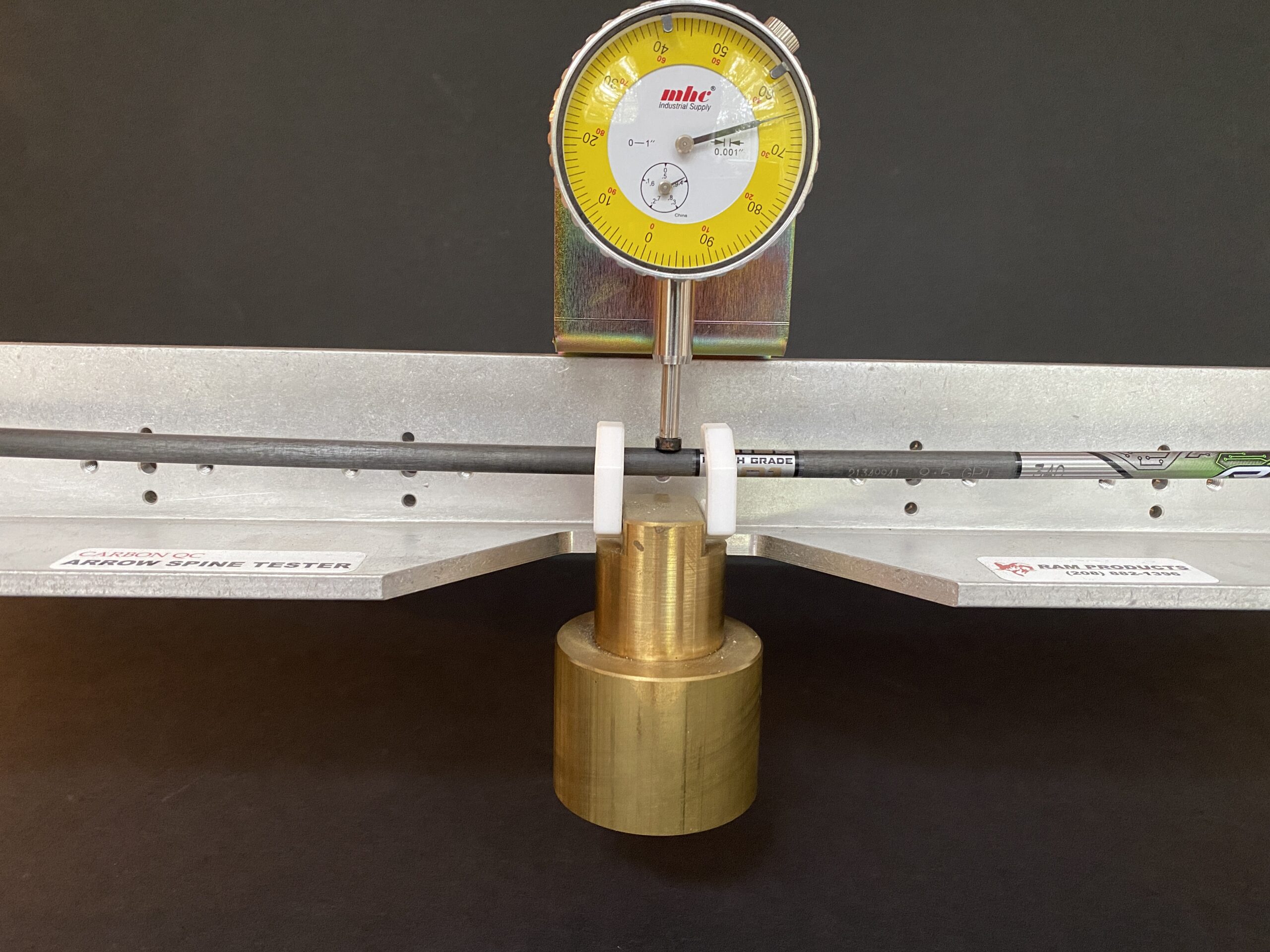 With my Ram Arrow Spine Tester, I can test the Axis shafts’ straightness and spine consistency. The packaging on my Match Grade Axis claims a .001 straightness. The .001 spec is inches of deflection. When I tested the Axis shafts, many of my arrows were not at the advertised .001 spec. They were .0005, which is straighter than advertised. Well done, Easton.