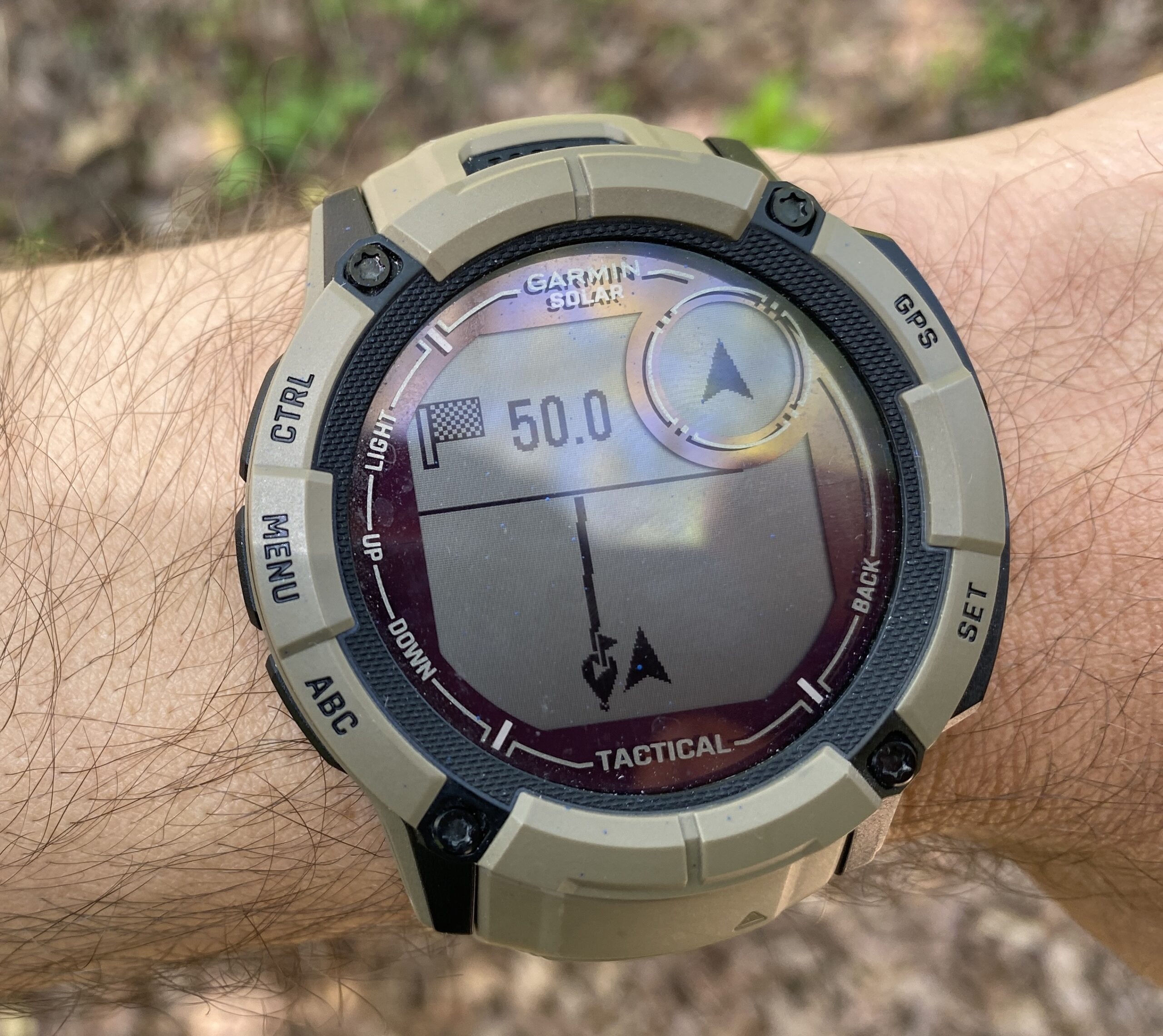 If you tap the CTRL button twice, a beam of light shoots out from the 12 o’clock position. The Fenix line has this feature, but this is the first time it has been in an Instinct.