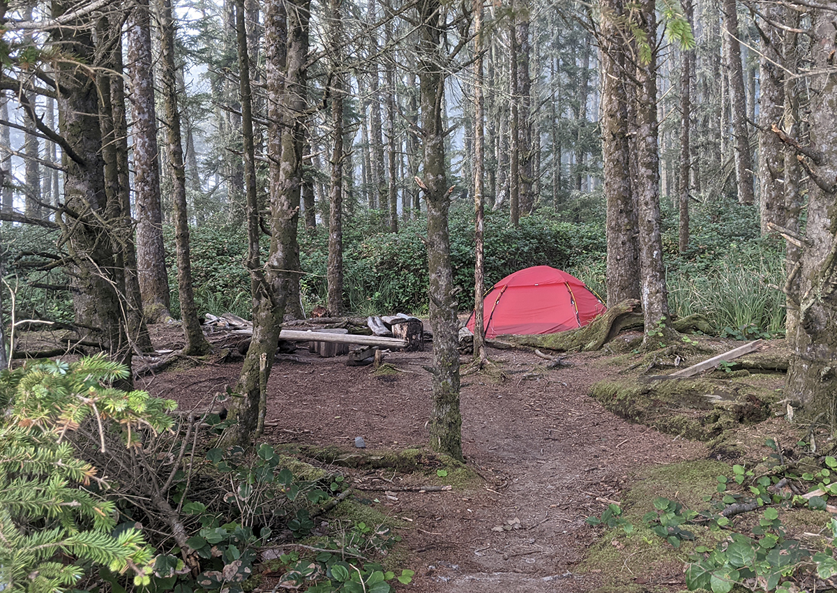 Our testing trip began with backpacking along the Ozette Triangle out to the Olympic Coast. Despite being late August, the weather was slated to be cold and wet, to the point that we made a last-minute pit stop to pick up extra rain gear for the kid. Between the incoming rain and the extra time it took to get out to the coast, we ended up stopping early at an empty campsite along Sand Point. Ironically, it was a spot we had been washed out of a few years prior when some small holes in the bottom of our heavily used Tarptent Cloudburst 3 made the bathtub floor a little leaky. So I was curious to see if the Hilleberg Allak 3 would struggle in the relentlessly damp and humid conditions or if this would turn into our redemption tour.