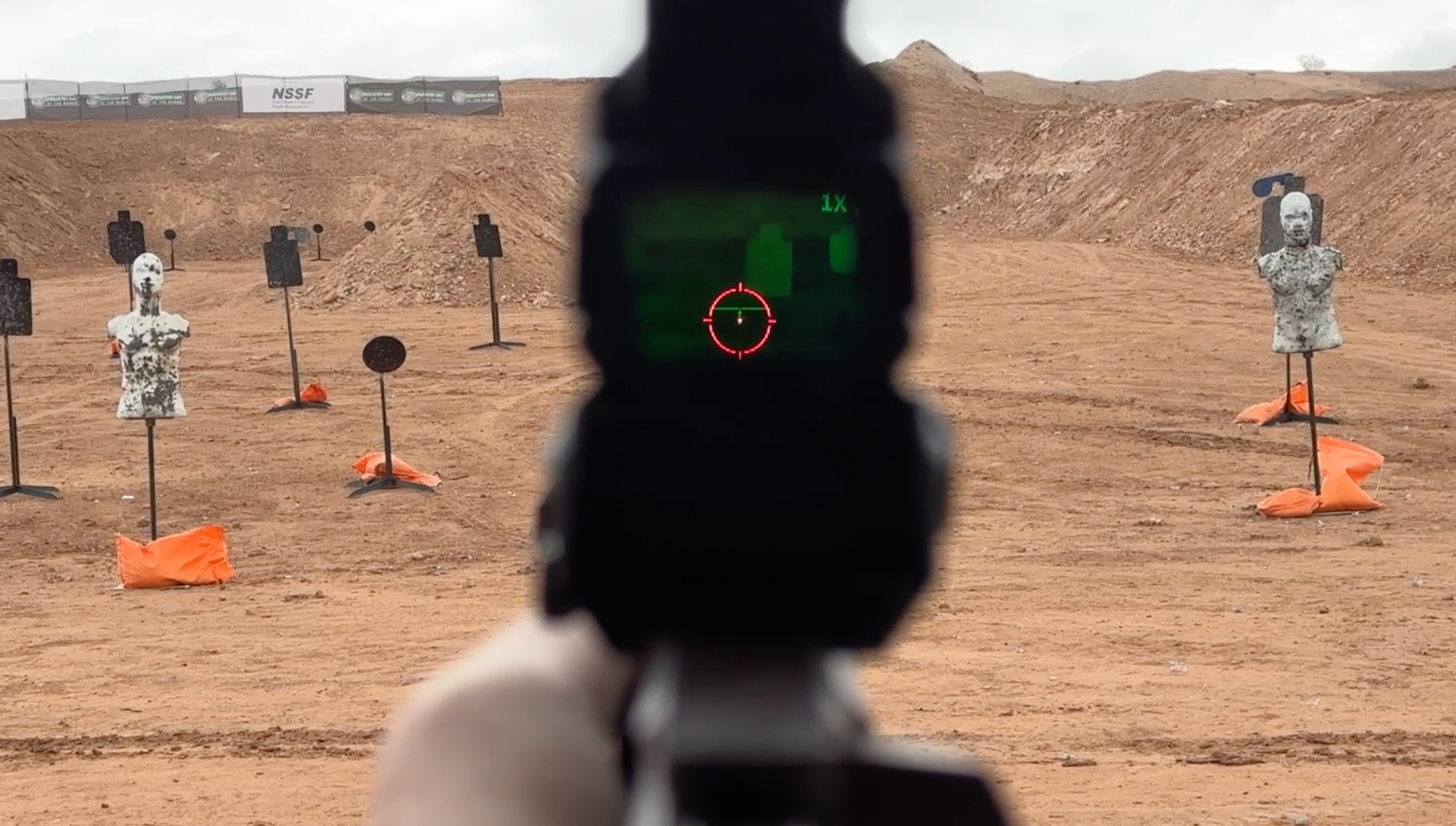 It’s important to note that I shot the above video with the scope cap closed to show what the optic looks like at night. With the scope cap up, looking through the DRS was like any red dot sight — a reticle overlaid on clean glass. I wasn’t able to see how the optic performed on heated targets, but I will be doing a full test and review of the DRS when they become available next month.