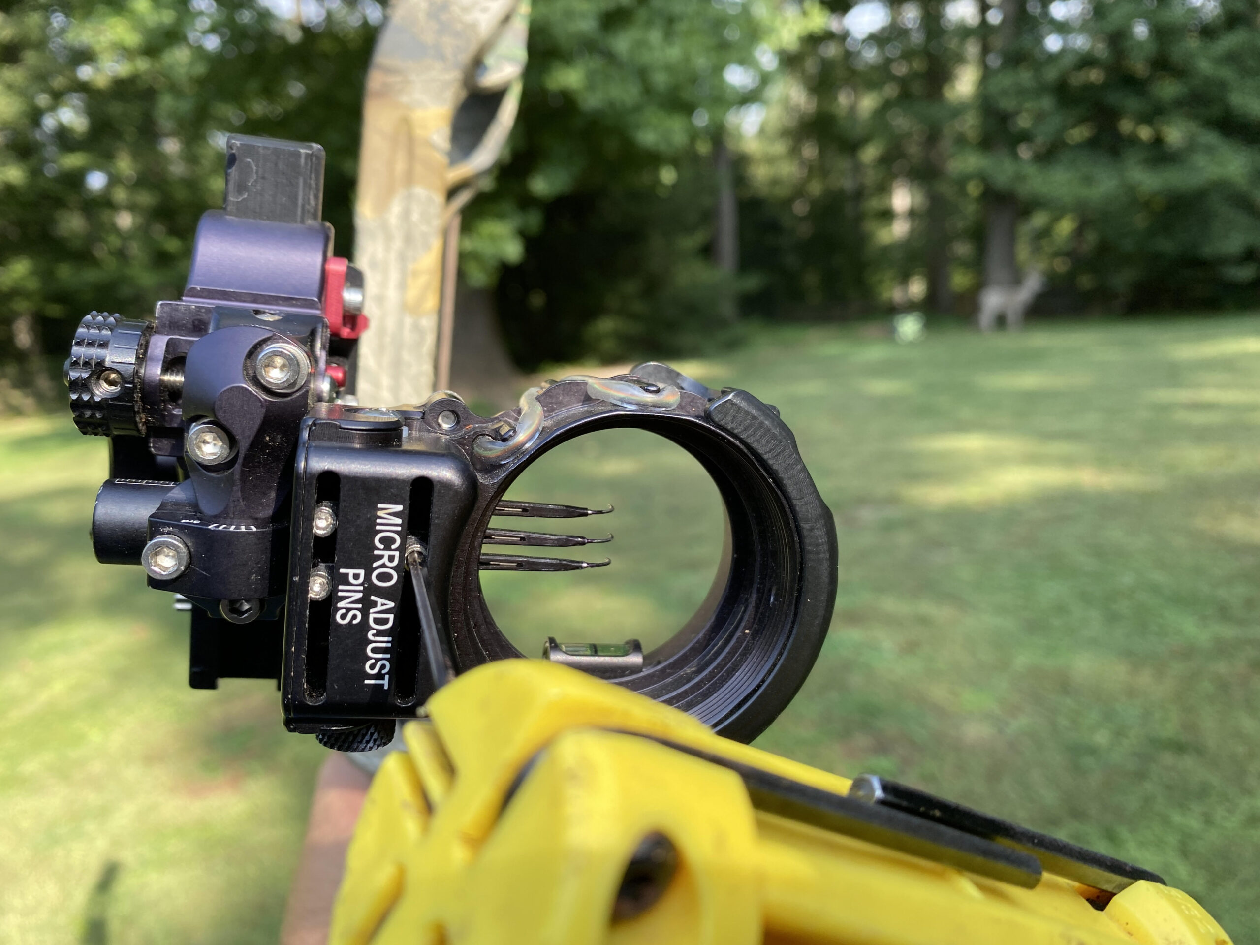 If your scope is properly leveled before you start, you should only have to move pins vertically after you zero your 20-yard pin. For windage, the 30, 40, 50, and 60 pins all should simply sit directly under the 20 in a straight, vertical line.