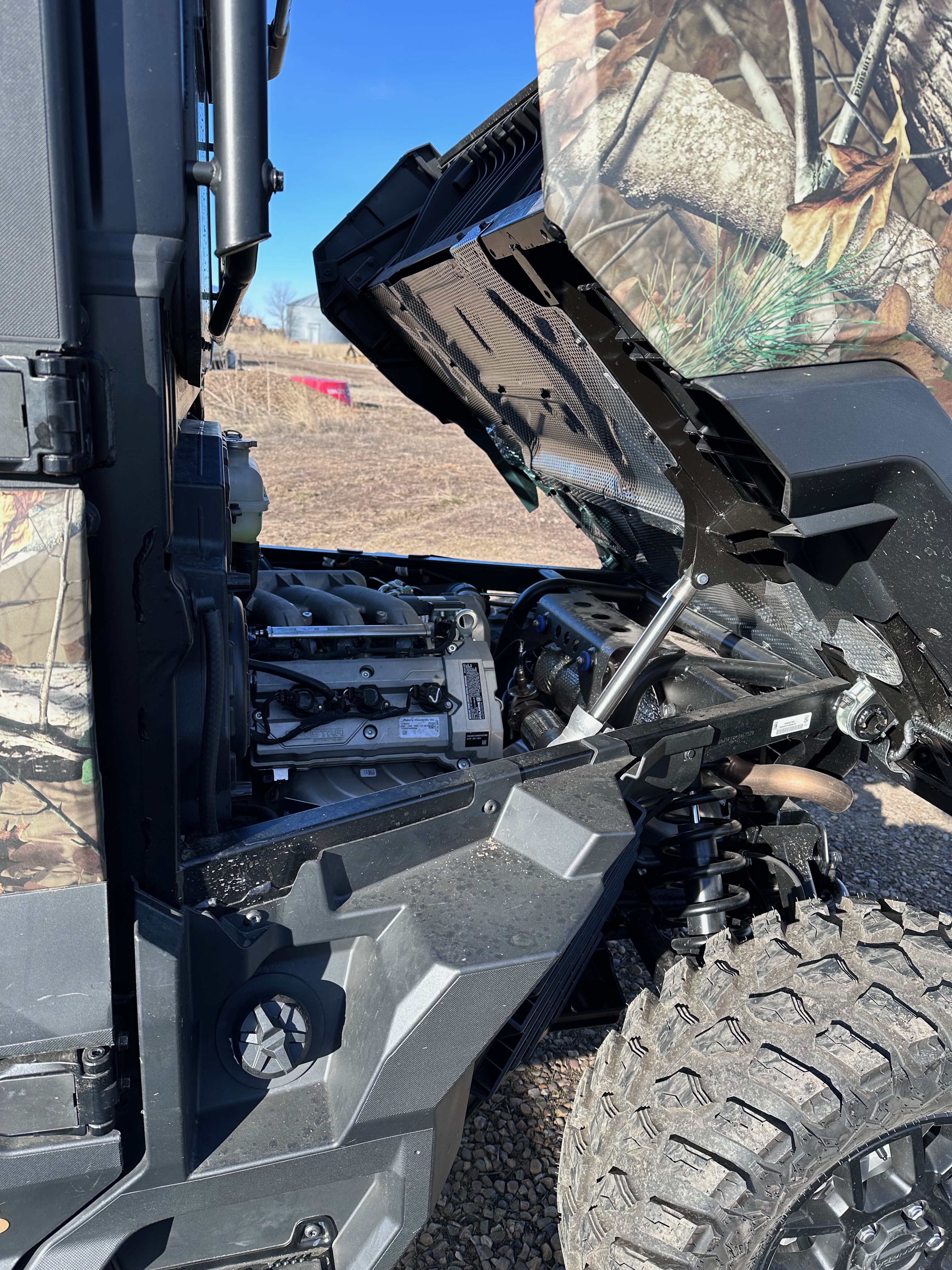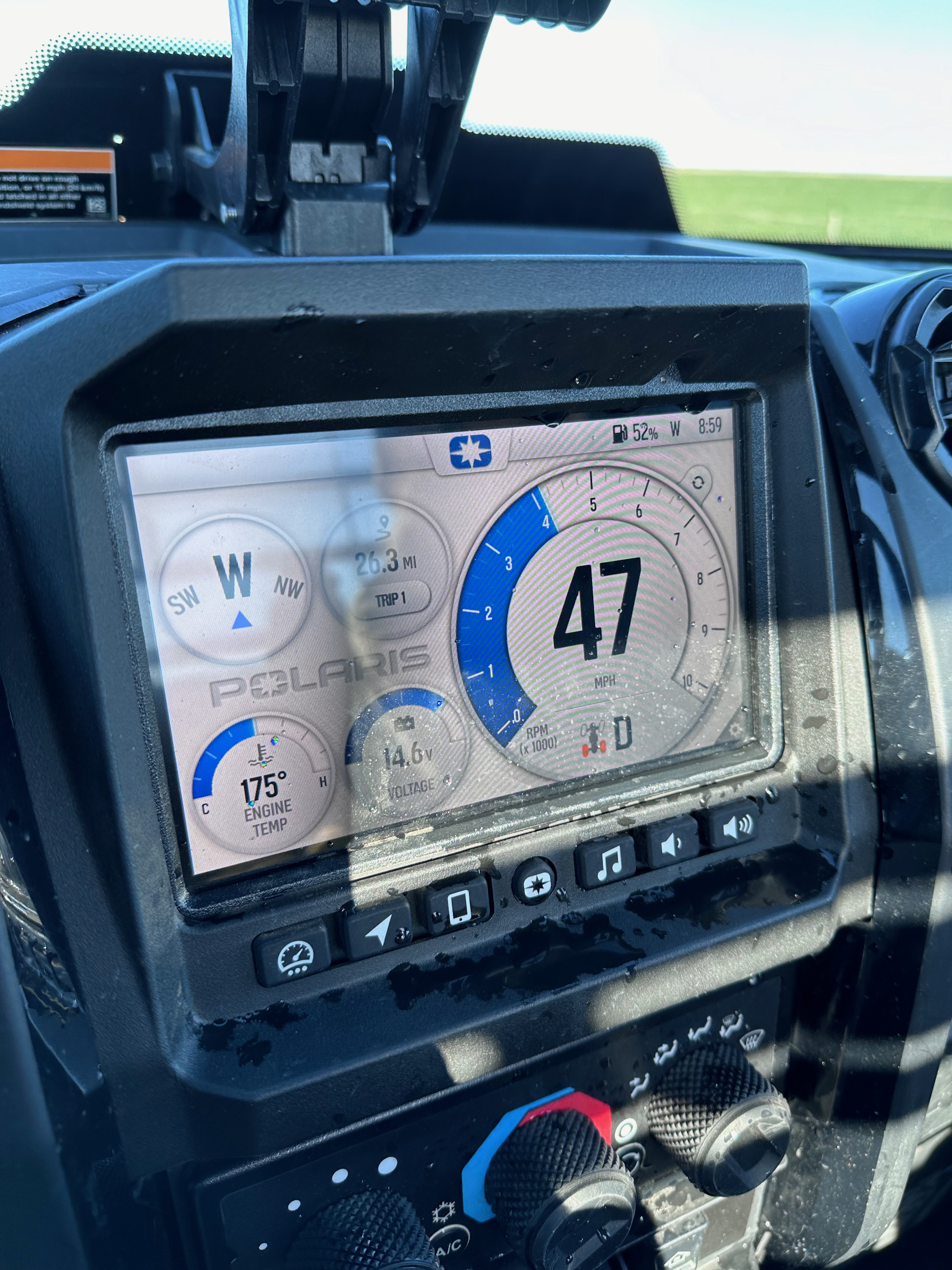 Additional attributes include its motorized tilt bed, an excellent wide-angle back-up camera, and 27-inch tires that not only scrabble over boulders but also the dirt cutbanks of the prairie. Ground clearance isn’t generally considered a tier 1 selling point for a UTV, but my ranching neighbors, all of whom have side-by-sides from Polaris’s competitors, raved at my ability to clear obstacles and navigate tricky terrain with my XP’s high-clearance suspension and stabilizer bar.