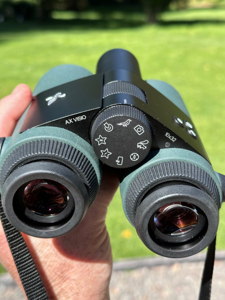 There’s so much technology in this 10×32 binocular that it’s easy to forget that its core is a very good observational optic. It is built around excellent glass, and has the velvety controls and precise handling that define Swarovski’s binoculars. But it’s fair to say that you’re not reading this story – or interested in buying the AX Visio – for its glass. You’re here for the crazy amount of technology that’s packed into the binocular’s significant 2-pound, 2-ounce build. It’s also fair to note that all that technology has optical costs; the AX Visio has about 15 percent less light transmission than Swarovski’s non-electronic 10×32 NL Pure binocular, because the displays inside the Visio require additional lens elements, which block light.