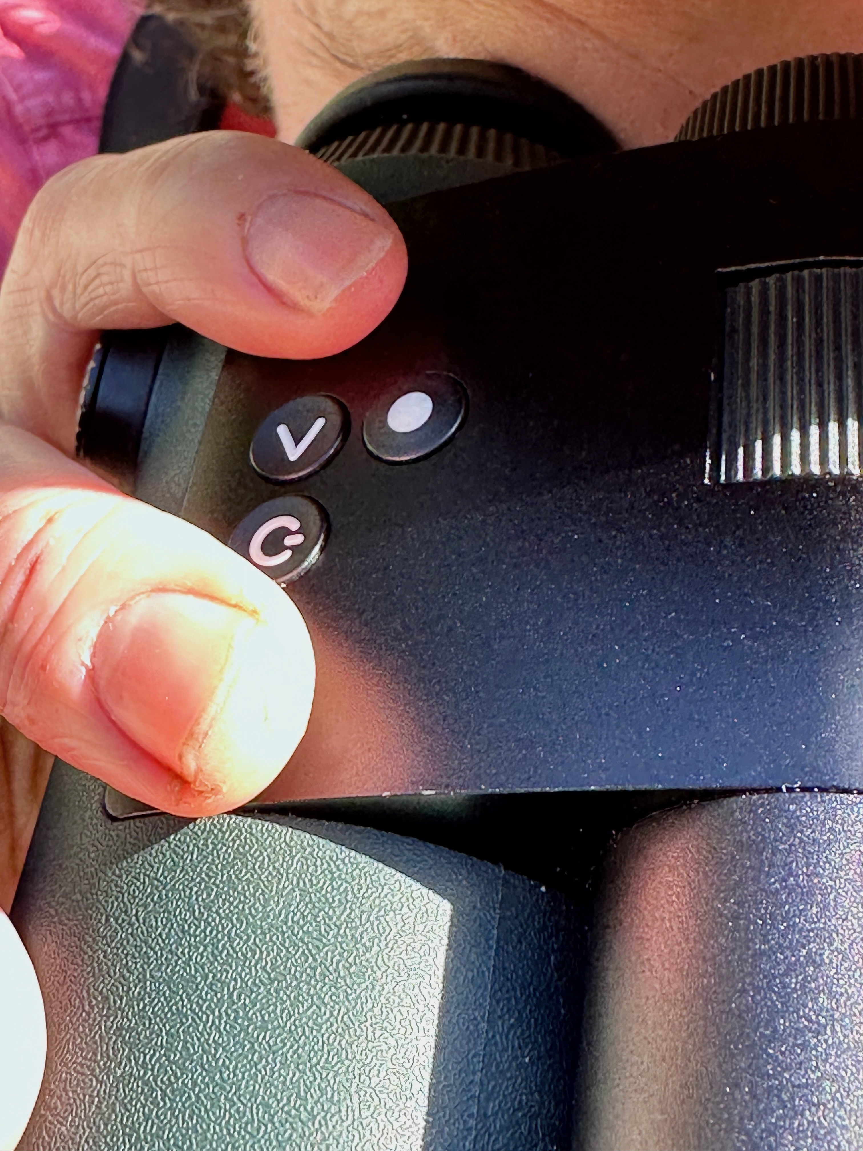 Set the binocular on the “Share Discoveries” function and mark your object by pressing a button. Then pass the binocular to your companion and the device will use compass headings and lighted arrows to lead them to the object you marked. It’s a simple and elegant way to share sightings without gesticulating wildly or using inadequate words and descriptions.