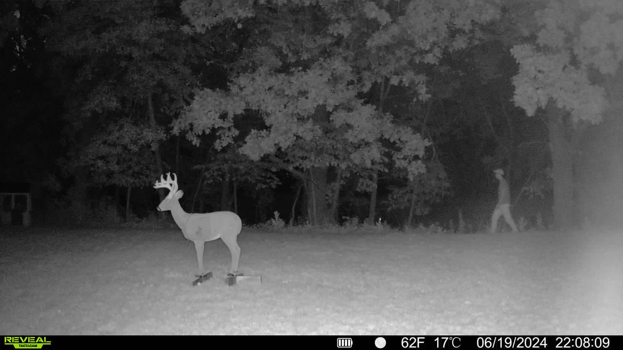 Markers were placed at 10 feet, 60 feet, and 110 feet. I walked past the camera (left to right and then right to left) at a medium pace at each given distance. I then repeated the walkthrough test at night. The test is meant to measure the camera’s detection range, trigger speed, shutter speed, and flash range. To help evaluate photo quality, I positioned a 3D archery target at about 10 yards. After the test, I looked for blank photos, failures to trigger, blurry images, and overall photo quality.