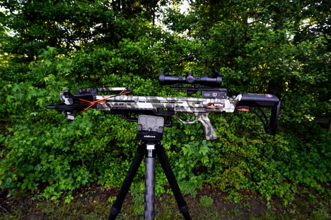 We tested accuracy from the bench, but that’s probably not how you’ll shoot when hunting, so we also shot crossbows offhand, kneeling, and off a tripod to see how they handled in field positions.