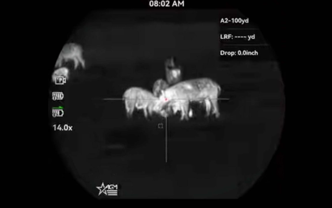 We haven’t tested this scope, but its specs make me think it would be a good option for hunting hogs over feeders. It has a 2.5 to 10x zoom and a 384 sensor. It was priced at $1,800 in early April, but the price went up to $2,000 for the last few months. It’s now back down to $1,760.