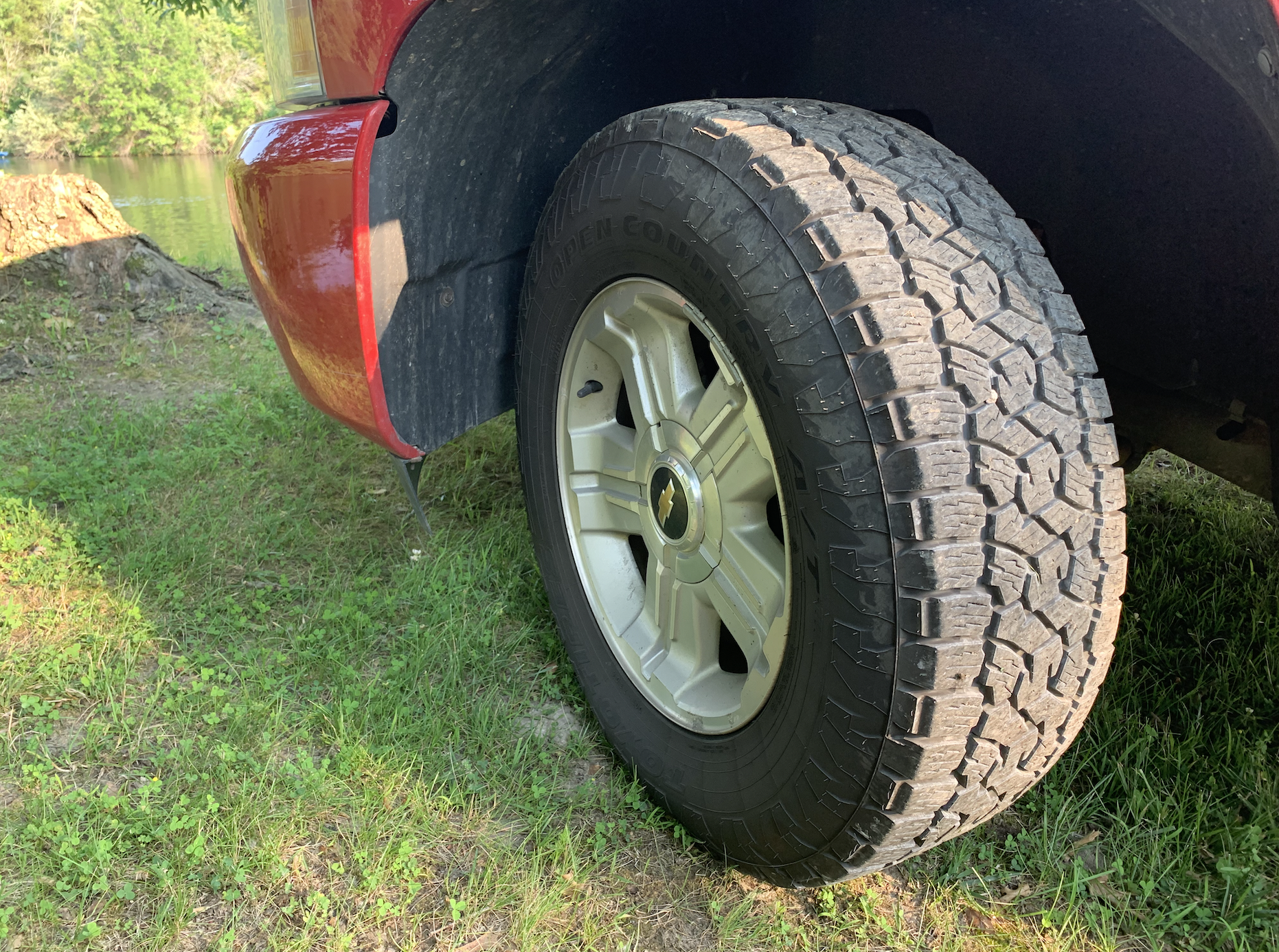 We chatted for a bit, and since I put a lot of on-pavement miles on my 2011 Silverado LT with occasional forays into muddy fields and down two-tracks, he suggested to go with the Toyos.