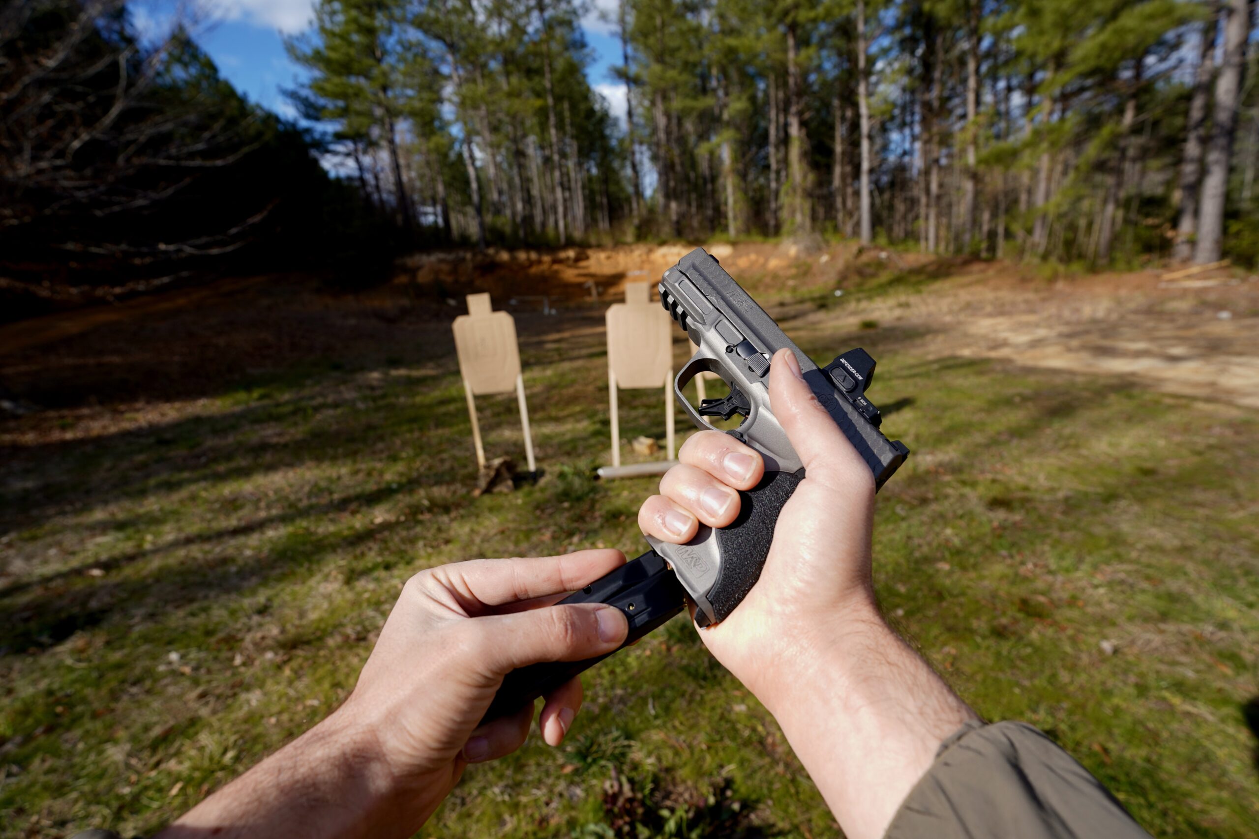 I shot my CCW in a variety of lighting conditions, including directly facing the setting sun, and the dot was bright enough in every scenario. The adjustment buttons are split—up on the left and down on the right. The buttons are large and have a nice click when you press them. I found it really easy to use my support hand thumb to quickly bump up the brightness as morning turned to midday.