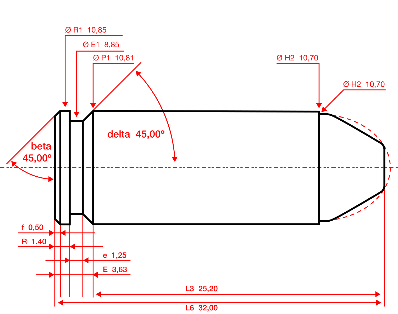 The most visibly different design characteristics between the two cartridges are the projectile shape and the shape of the extracting groove. The .45 ACP typically employs a rounded-nose projectile, while the 10mm often uses a truncated-cone, flat-point bullet—at least with ball ammunition. The extracting groove of the .45 ACP—the groove in which the extractor hooks the rim of the case—has a 26-degree angle up to the body of the case. It looks very similar to other Colt auto cases like the .32 and .380 ACP. The 10mm has a shorter, 45-degree ramp from the bottom of the extracting groove to the case body. If you need further education on this, mix up a 5-gallon bucket of .45 ACP and 10mm auto brass, then sort them out. You’ll be an expert in no time.