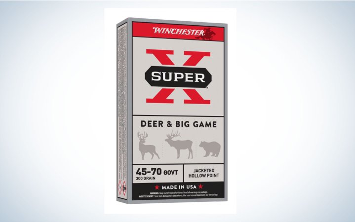 The Super-X line of ammunition has been a Winchester mainstay for more than 100 years. The 300-grain JHP in .45-70 will handle any medium sized game like deer, hogs, and bear, and wouldn’t be out of place to use on an elk in timber, provided you can stalk close enough (200 yards or in) to take the animal within the round’s effective range.