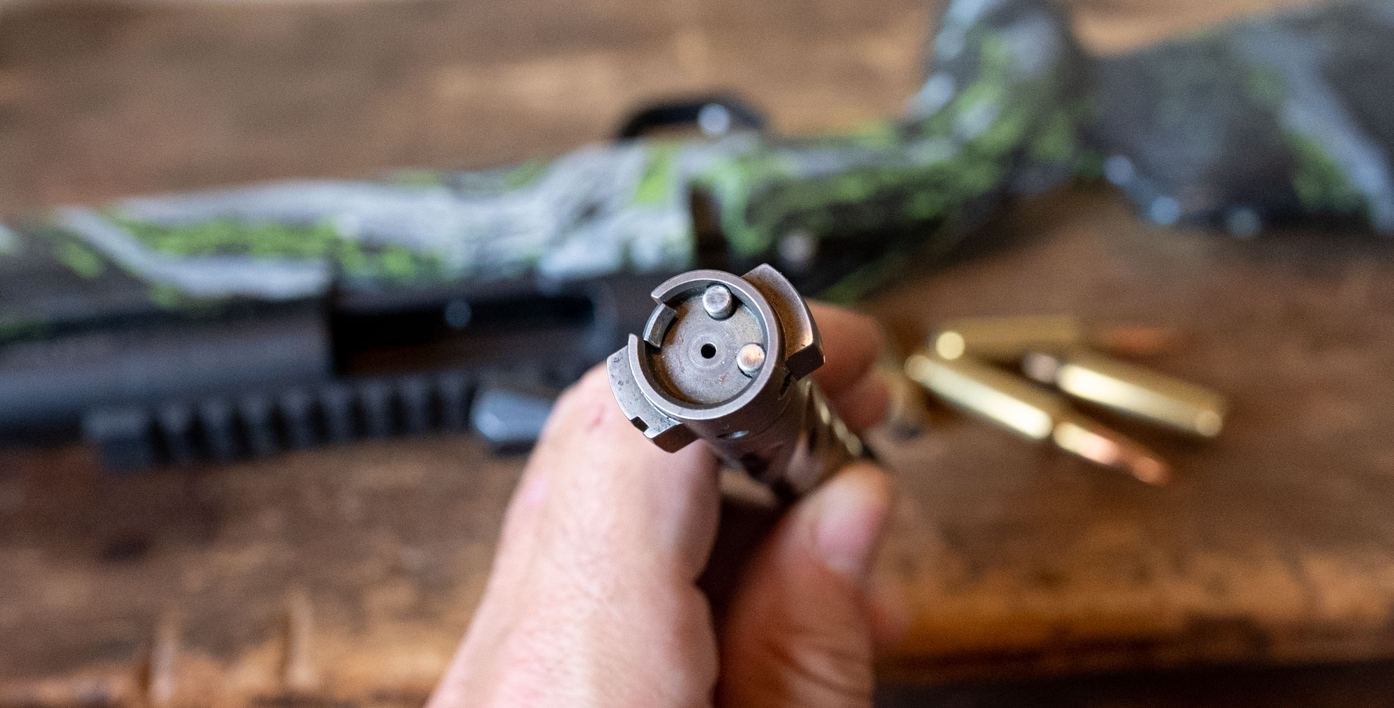 One way to envision an accurate rifle is to picture a straight line running down the middle of the rifle barrel. You want every component of our imaginary rifle to be aligned with that line. This starts with the barrel. We want the bore to perfectly follow that line. The chamber should be cut so that it is symmetrical to the line too. We want the bolt to be positioned with the middle of the bolt face—represented by the firing pin hole—centered on that line as well. The bolt face should be at a perfect 90-degree angle to the line, and so on.