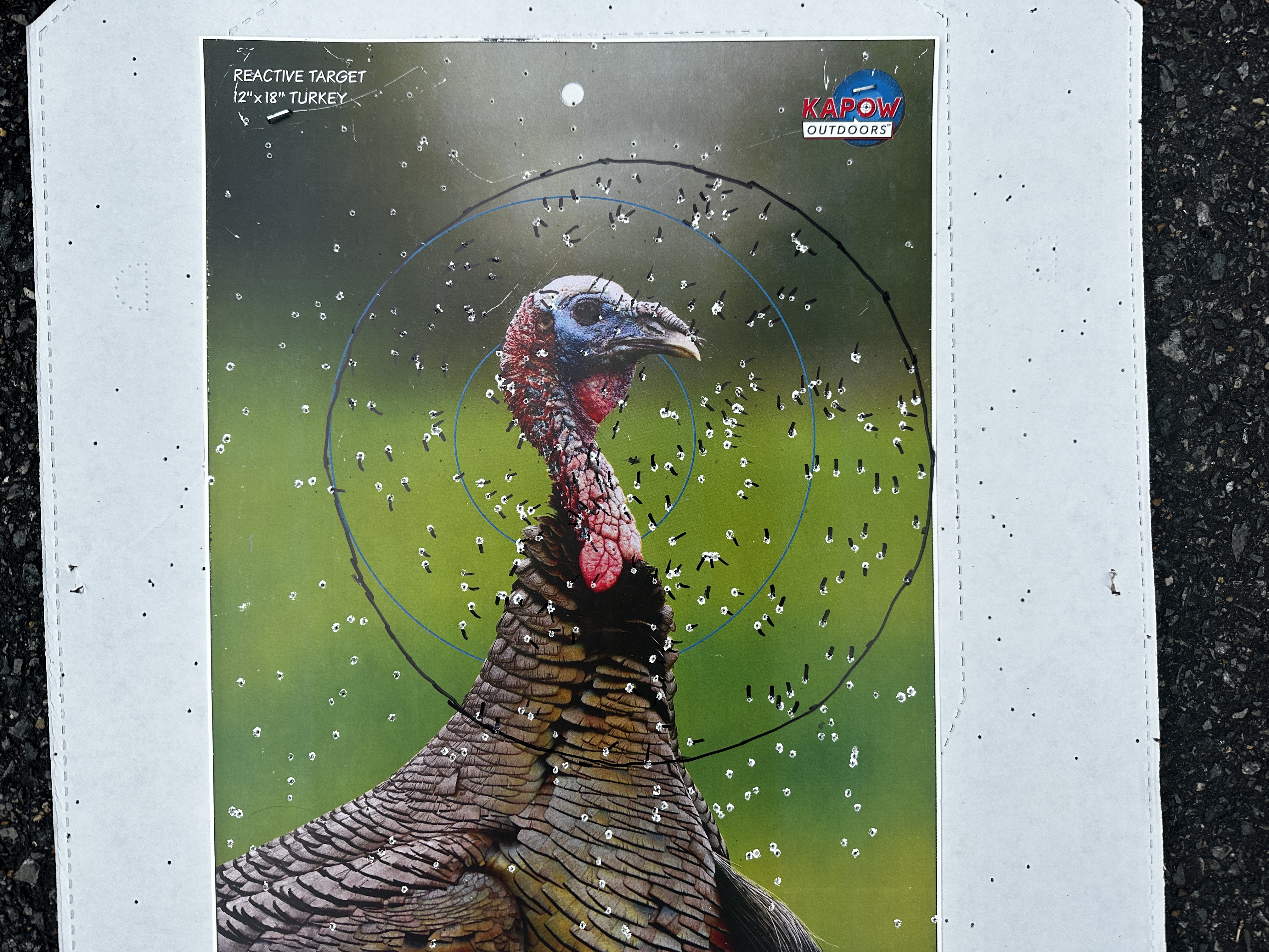 The Federal Heavyweight load put 144 pellets inside the circle, but even that is plenty to drop a turkey stone dead at 40 yards.