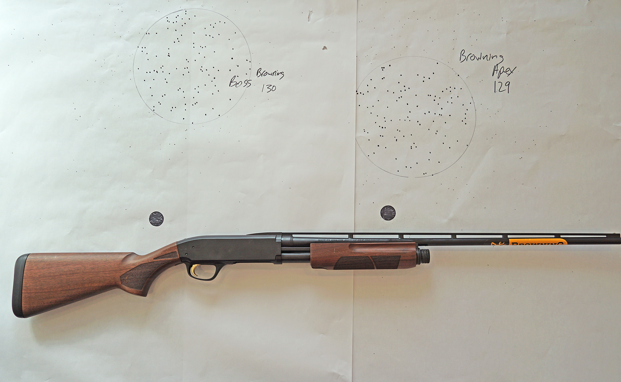 With a flush full choke, the BPS shot tight patterns with both loads and recorded the second tightest patterns in the test with Apex (behind only the Mossberg 500). On the downside, the gun patterned quite high with almost 100 percent of pellets striking above the point of aim. As you can see in the photo below, the core of the pattern was about a foot higher than my aimpoint.