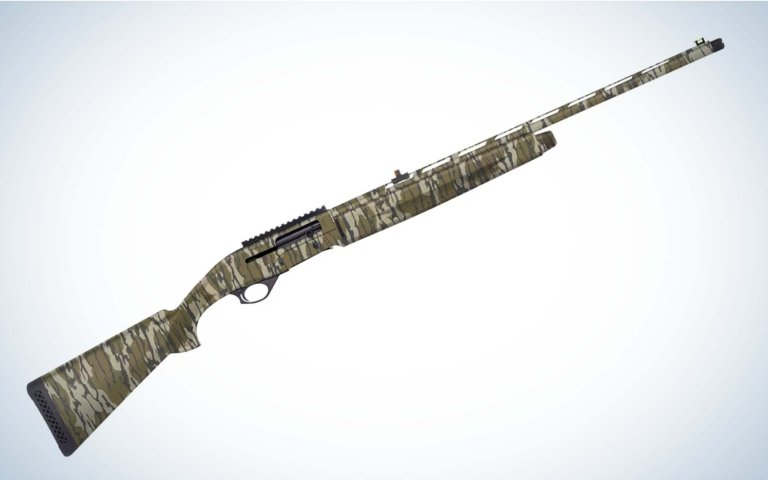 This is a killer looking Turkish-made gun (Armsan) that comes with all the features I’d want in a semi-auto turkey gun: rail for an optic, extended turkey choke, pistol grip, and synthetic camo stock. I only wish the gun patterned better. It did well with Apex loads but didn’t like the Boss loads. I also shot this gun in my review of the best .410 turkey ammo and it lagged behind the Stevens and Mossberg in terms of pattern density there as well.