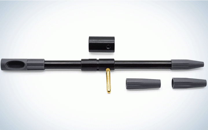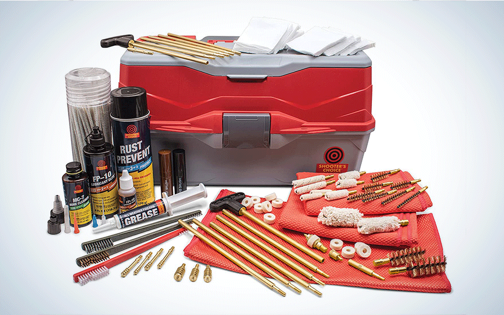The Bullseye Box from Shooter’s Choice packs just about everything you need to clean a wide variety of guns in a single package. It includes two brass cleaning rods and accessories to clean just about any rifle, pistol, or shotgun you have. It also includes three different brushes for scrubbing stubborn powder fouling.