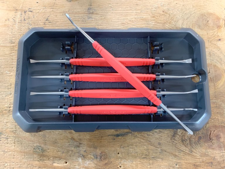 - Picks and punch aid in disassembly and removing tough carbon deposits