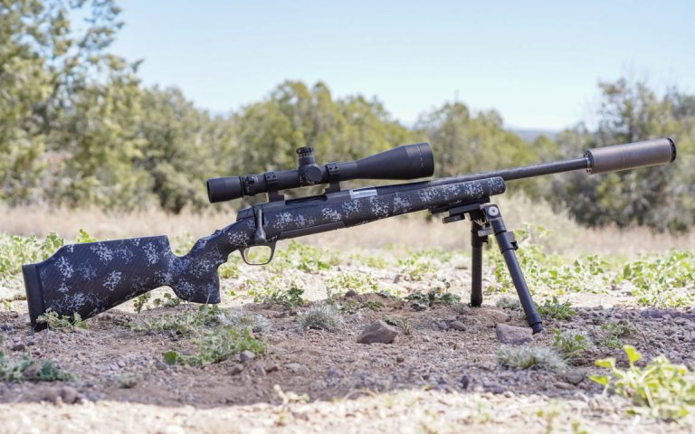 The stubby barrel keeps the overall length down (just 38.25 inches) and allows the rifle to pair well with a suppressor. During our evaluation we ran it with two cans in particular — the Banish Backcountry and the SilencerCo Scythe Ti.