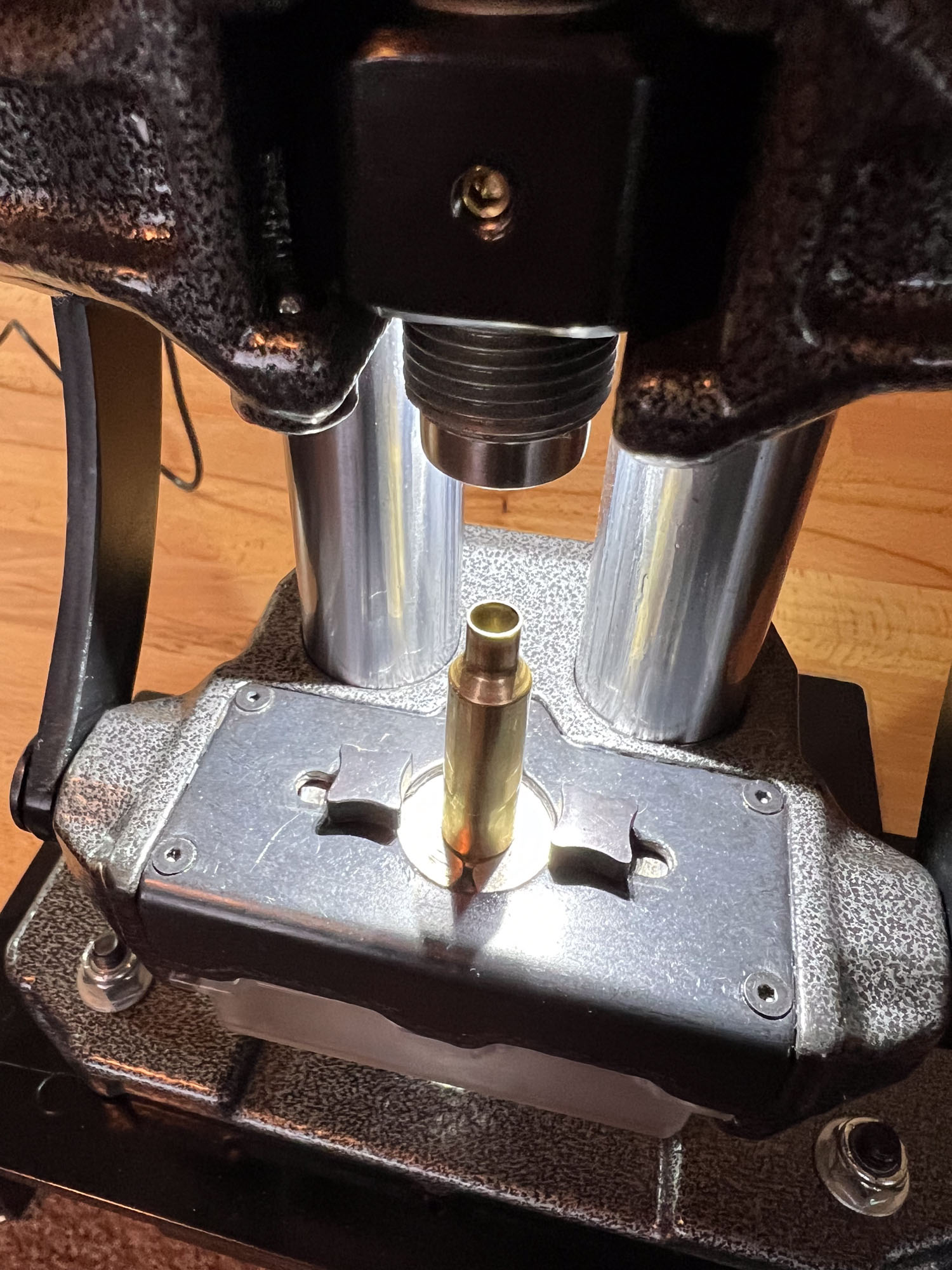 It does a great job in that capacity. The automatic case feeder, which I highly recommend, is basically bomb proof, and everything else on it works like a charm. Mostly, I’m running new brass through mine, hitting the necks with an expander mandrel to smooth them out. I’m also using the unit to prime the brass, which it does during the forward push on the handle.
