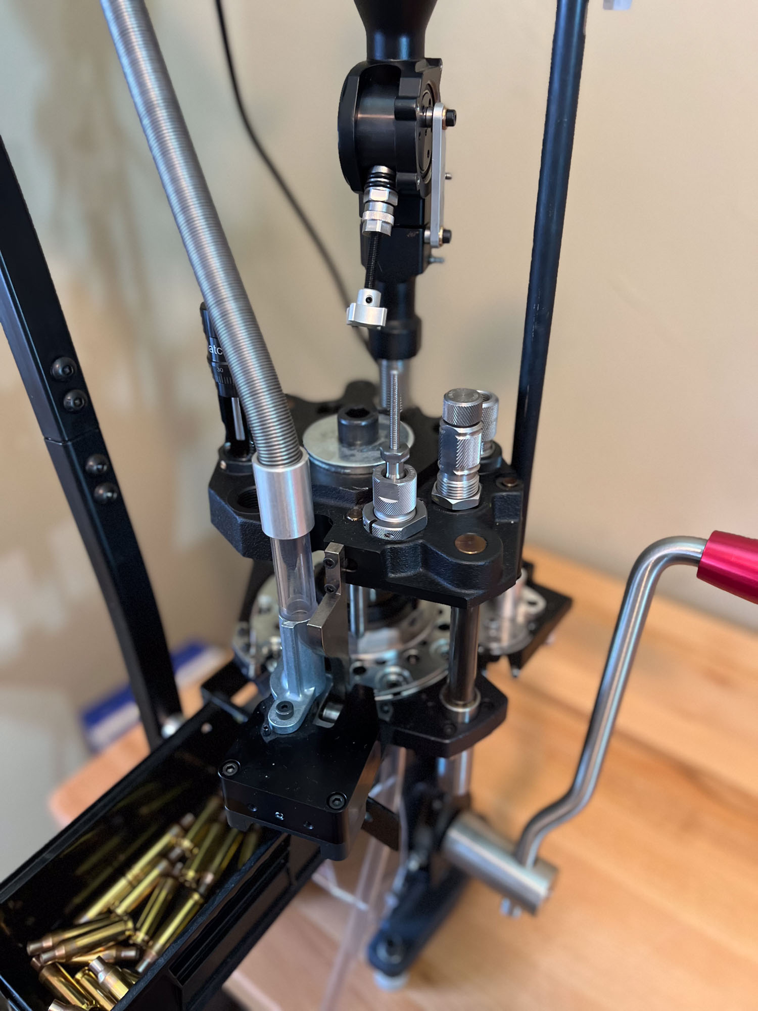 Another thing that can’t be over-emphasized when taking the plunge into the world of progressive presses is to take one step at a time when setting up the dies and stations. So get your sizing/decapping station figured out before adding a bullet seater, primers, or powder drop.