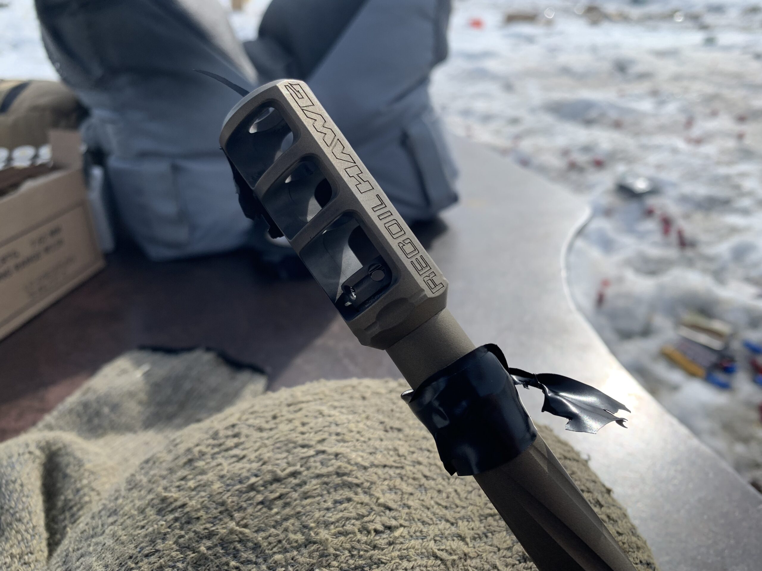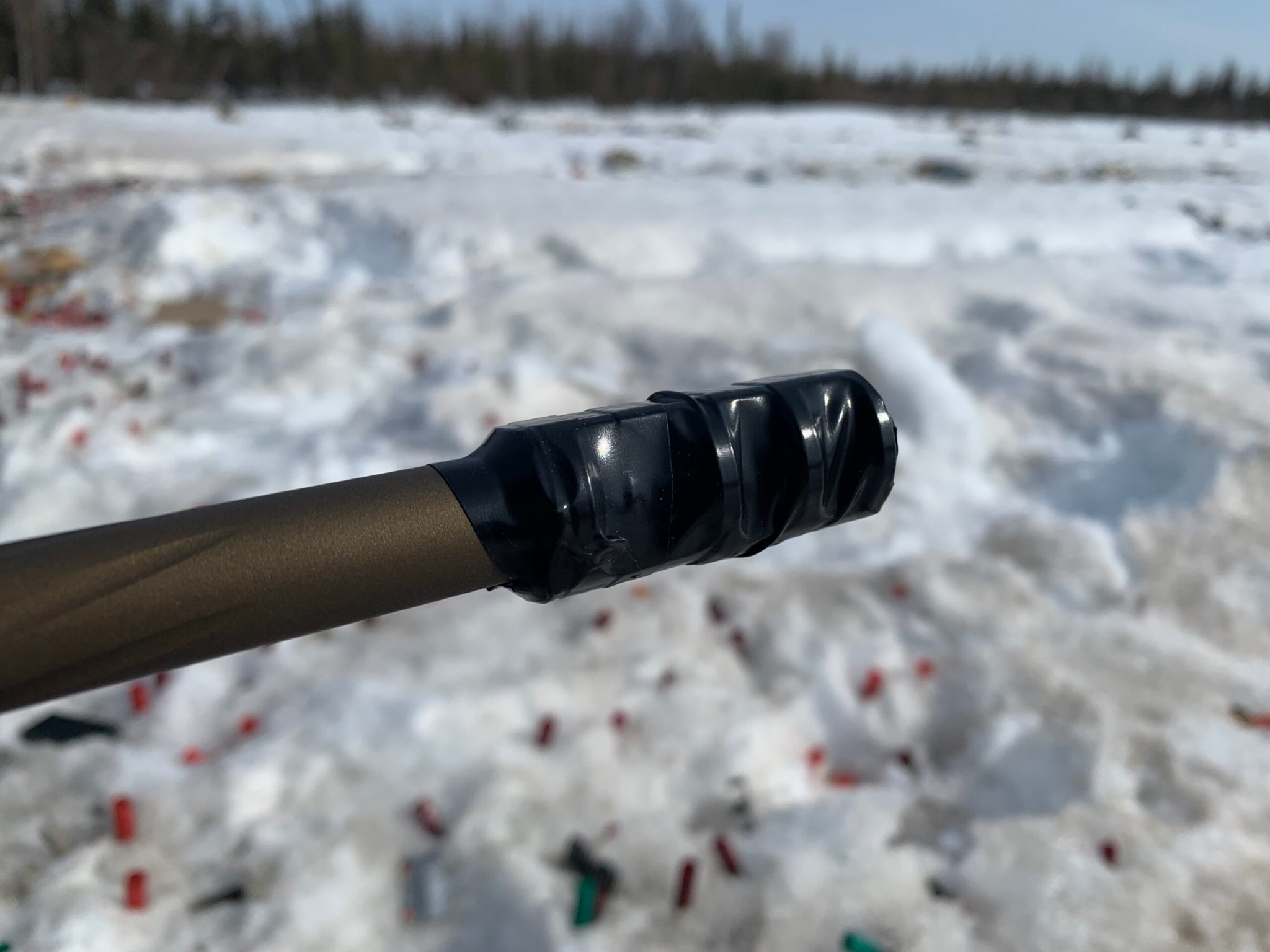 Some shooters will be concerned about taping over a large muzzle brake, like the Recoil Hawg, but in my test it appeared to have no perceptible effect on the brake or rifle’s performance. All the tape was completely blown off the brake with each shot.