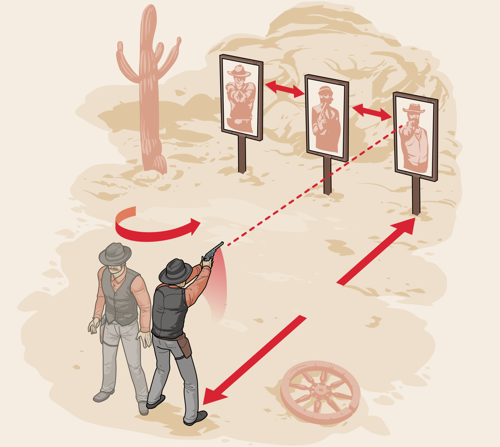 The targets can be shot from left-to-right, or right-to-left, it doesn’t matter, but they all need to be shot twice, then twice again after a reload. It’s helpful to turn into the gun, or pivot towards the side that your holster is on.